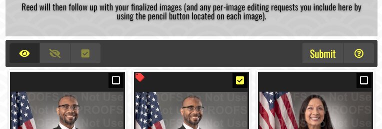 Can I simplify this layout for my clients and always force the word “Submit” AND the arrow/box icon via CSS override? I think that button-consistency would help them know exactly which button symbolizes “Submit” when reviewing proofs on their mobile phones.